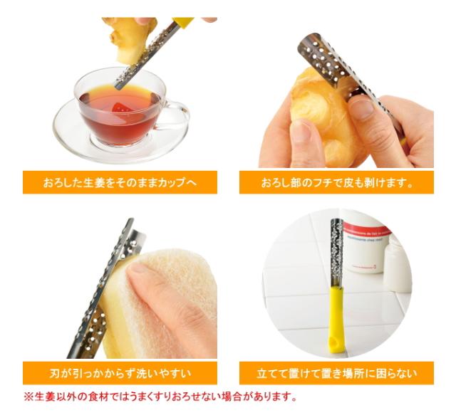 | 注意 | 本製品は、しょうがをおろすことを想定した商品です。 しょうが以外の食材ではうまくすりおろせない場合がございます。 |