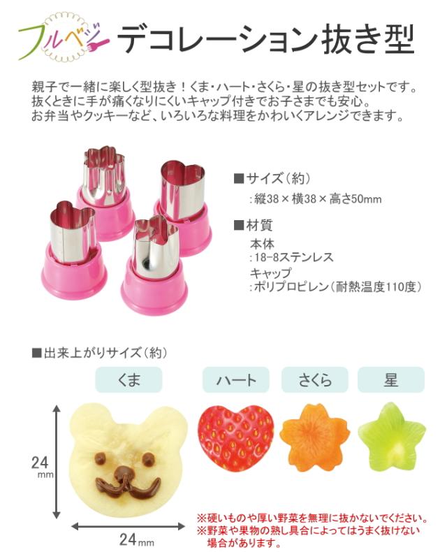 フルベジ デコレーション抜き型 FV-623 日本製 さくら 花 星 くま ハート 型抜き ぬき型 調理 料理 お弁当 飾り付け デコ弁 キャップ付き 抜型 キャラ弁 野菜 クッキー チーズ ハム かわいい 飾り キッチン用品 キッチングッズ 調理器具 調理用品 食洗機対応 下村工業