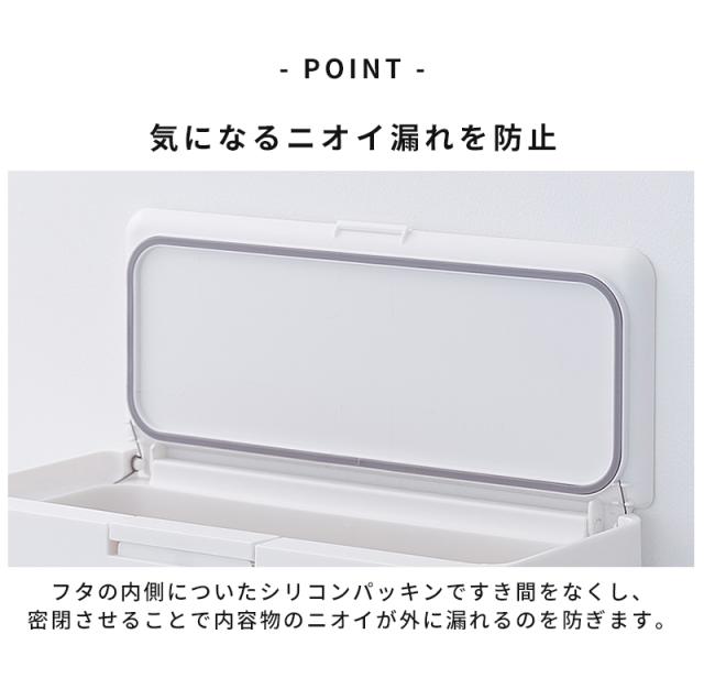 ゴミのニオイ漏れを防ぐダストボックス「シールズ」。フタの密閉シリコンパッキン構造により、ニオイがお部屋に広がるのを軽減します。さらに、片手で開閉できるワンタッチオープン式、スムーズな袋の着脱を可能にするクリップホール、取り換え用の袋を収納できるポケットなど、使いやすさにもこだわっています。キッチンはもちろん、おむつ用ペールやペット用ダストボックスとしての使用もおすすめです。