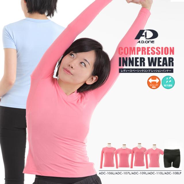 加圧シャツ レディース インナー ベーシック コンプレッション スパッツ クルーネック Vネック トレーニング スポーツ 上下別売 ぽっきり