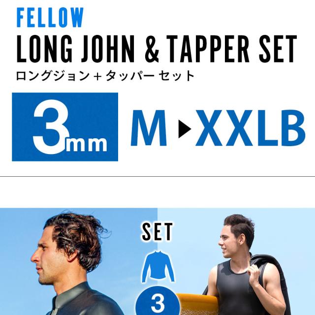 FELLOW ロングジョン & タッパー セット メンズ 3mm ウェットスーツ サーフィン 2ピース