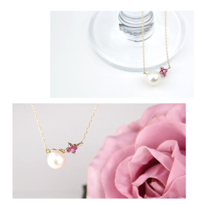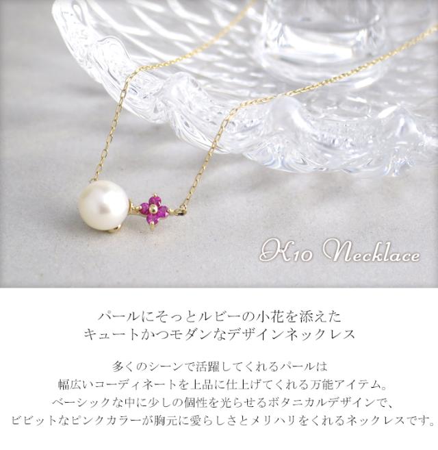 K10 10金 ネックレス シンプル パール ルビー 6月 7月 誕生石 天然石 淡水パール 淡水 ラグジュアリー 上品 フラワー ナチュラル ボタニカル 花 赤 きらきら かわいい フェミニン 華奢