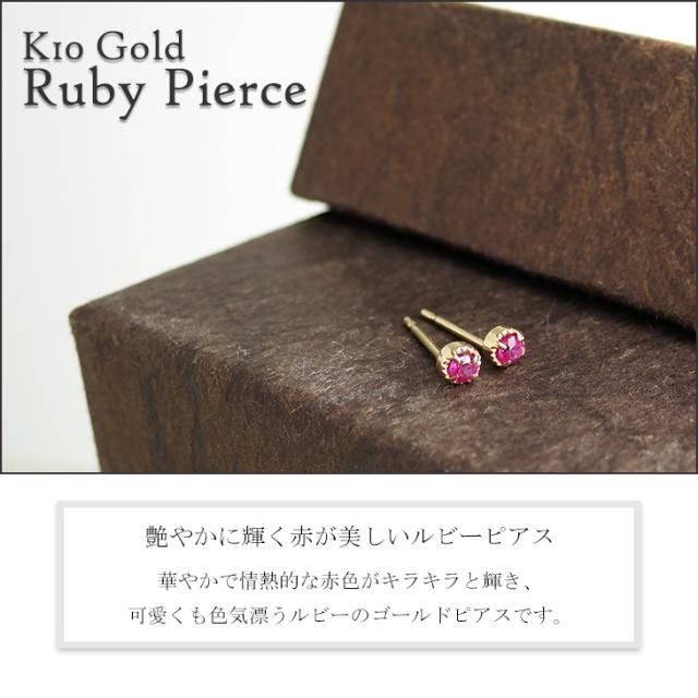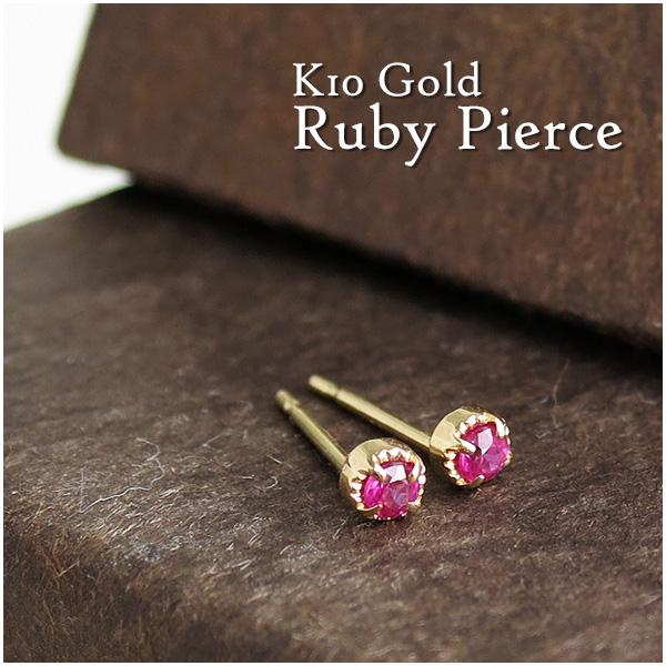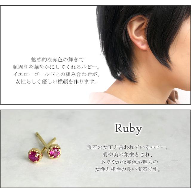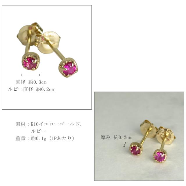 ルビー ピアス イエローゴールド(2P両耳)10金/ゴールド/レディース/ピアス/両耳/7月誕生石 天然石