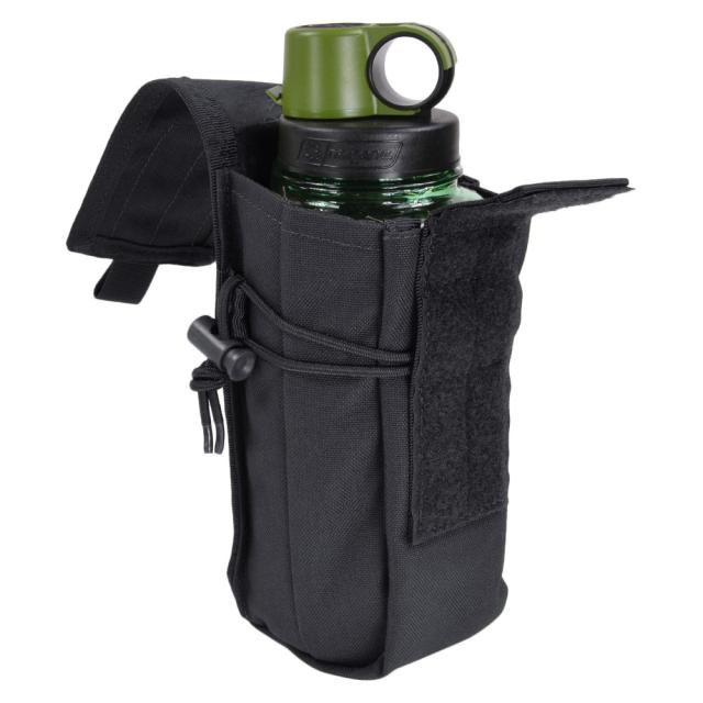 各種サイズのボトルに対応するコンドル・アウトドア社のウォーターボトルポーチ。バンジーコードとベルクロで太さと高さの調整ができるので、750mlのウォーターボトルはもちろん、500mlのペットボトルから1Lのナルゲンボトルまで保持することができます。