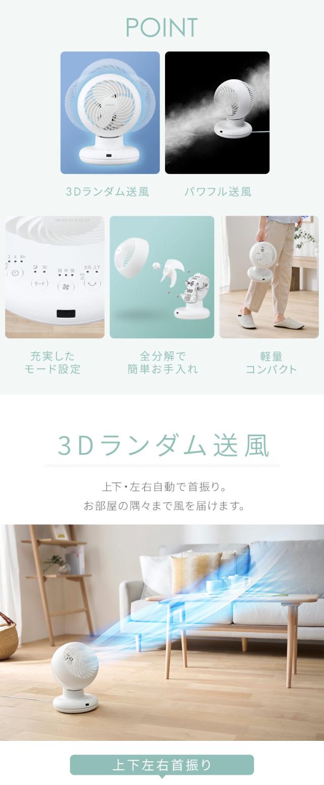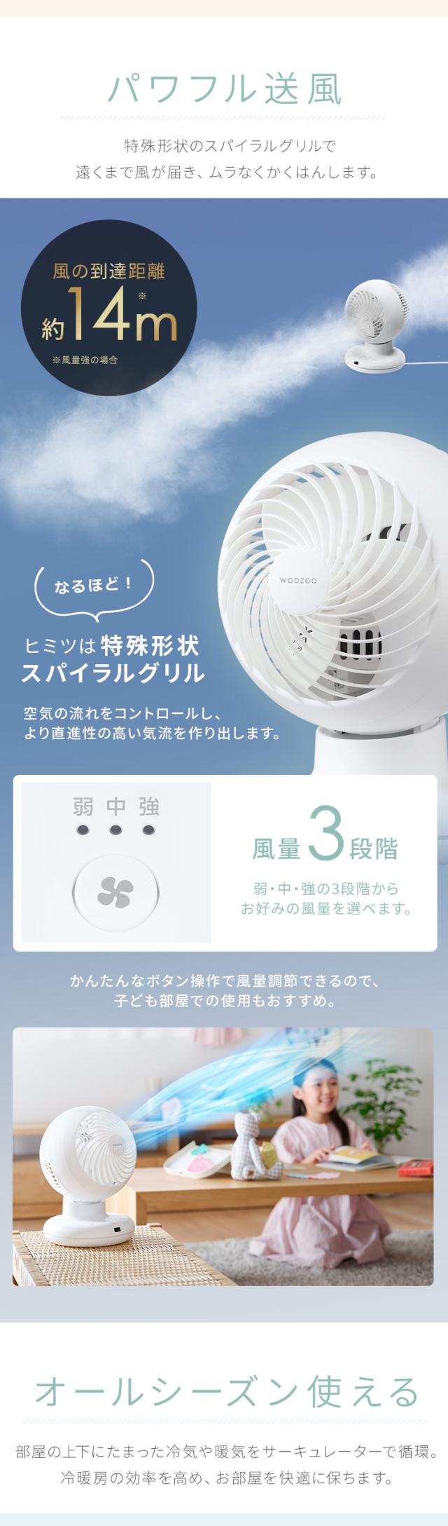 [検索用:サーキュレーター 18畳 コンパクト 省エネ 静音 換気 丸洗い 軽量 タイマー付き ランダム送風 おやすみモード お手入れ簡単 全分解 WOOZOO 4967576740920]