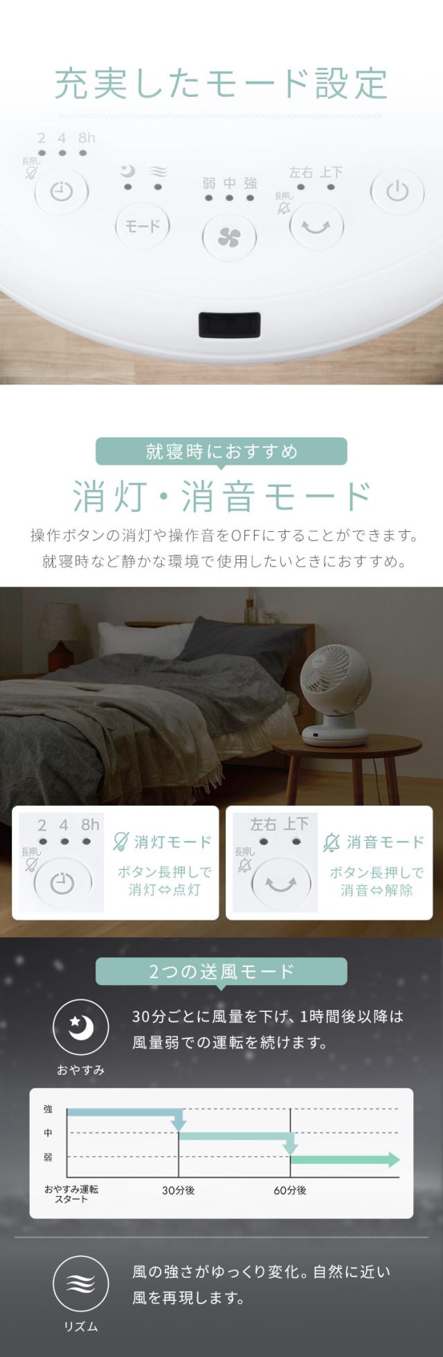 - 使い勝手が良いのと、満足の風量、夏場のお風呂上がりには必須です。 洗濯の室内干しやエアコンの冷気や暖気の拡散通年で愛用してます。 利用頻度が高いので多少スイング音がする様になりますが、気にならない程度...