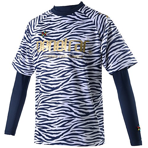 商品名 PENETRARペネトラール インナー付プラクティスシャツ。 商品番号 243-08009。 カラーNAVY(ネイビー)。 サイズ Sサイズ(身長162-168cm、胸囲85-91cm、ウエスト71-77cm)。 商品説明 PENETRARペネトラール インナー付ゼブラ柄プラクティスシャツ 。 フットサルブランド”ペネトラール ”。 襟元は伸縮性のあるリブ使用。 メーカー名はプリント。 右胸のメーカーロゴは刺繍ワッペン縫い付け。 素材 シャツ:ポリエステル100% インナー:ポリエステル87%、ポリウレタン13%。