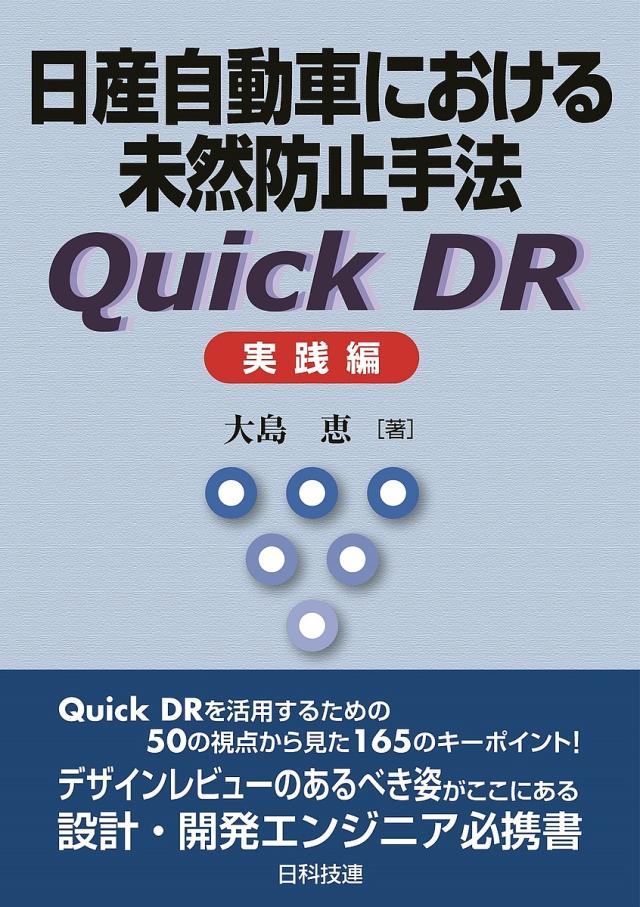 品質規格や教科書では解説されていない以下の内容について、50の視点から解説し、165のキーポイントとしてまとめている。(1)日産自動車や筆者のセミナーを受講した企業の開発・設計現場において、筆者が感じた問題・課題と対策。(2)Quick DRを実践する際に設計エンジニア、レビューアが理解しておくべきコツ・ポイント。(3)設計エンジニア、レビューアのあるべき姿、心がまえ。(4)開発・設計に対するトップマネジメントのあるべき姿、姿勢。
