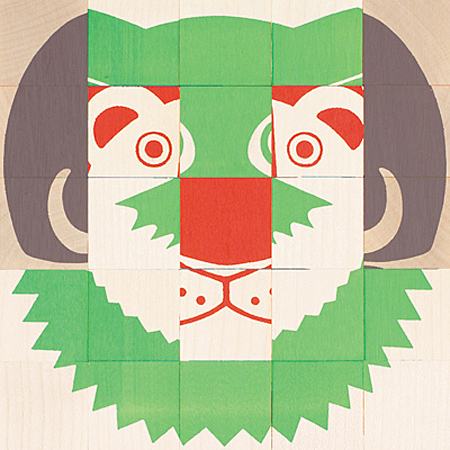 | スイス・Naef(ネフ社)の6種類の動物のお顔が作れる木製キューブパズル「アニマルパズル」です。 |