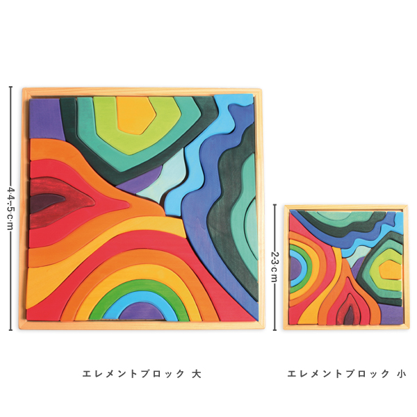エレメントブロックは、虹・火・岩・水の4つの自然のエレメント(要素)をモチーフにした積み木セットです。