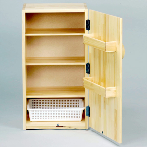 *こちらの商品は法人様への販売のみ、個人様宅へのお届けは不可となります。| 幼稚園・保育園にオススメなブロック社の木製おままごとキッチンアイテム。おままごと、ごっこ遊びのコーナー作りにピッタリです。 冷蔵庫のドアには、開きすぎないように下部にストッパーが付いています。 また、安全の為にドアと天板の間には指をはさまないように隙間があいています。 野菜室用のカゴもセットになっています。 白木棚や椅子、テーブルと同じ素材なので一緒に並べても違和感なく使用できます。 子どもの想像力を引き出しやすいシンプルなデザインです。 ※完成品でお届けいたします。 |