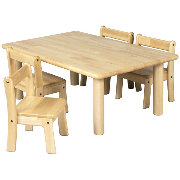 ブロック社 角テーブル 90×60 丸脚<H51>と幼児椅子<座高29>×4脚セット 〜幼稚園・保育園に