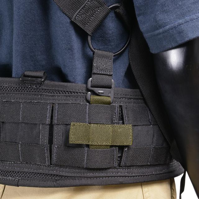 同社のバトルベルト、スキミッシュベルト、レイズベルト、ブロコスベルトの他、モールタイプのベルトの両脇に装着すれば、サスペンダーのフックの着脱が容易。