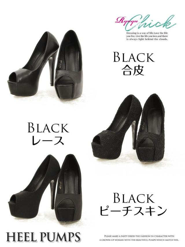 ☆合皮レザー・スエード・ピーチスキンの選べる前厚オープントゥキャバクラパンプス♪