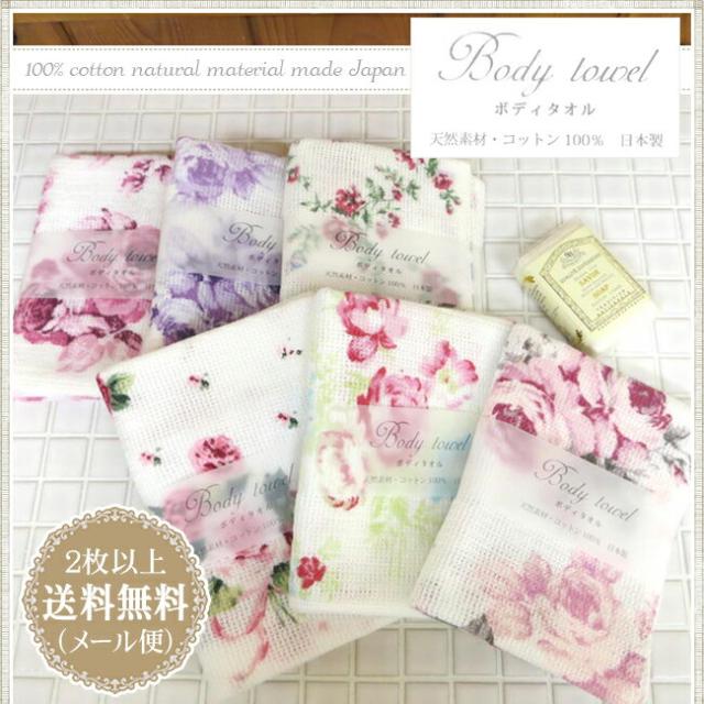 【2枚以上で送料無料】ボディタオル バラ柄 ローズ柄 おしゃれ 綿100% 日本製 約25×100cm コットン お風呂 クラシック アンティーク カントリー レコンプランニング ポイント消化