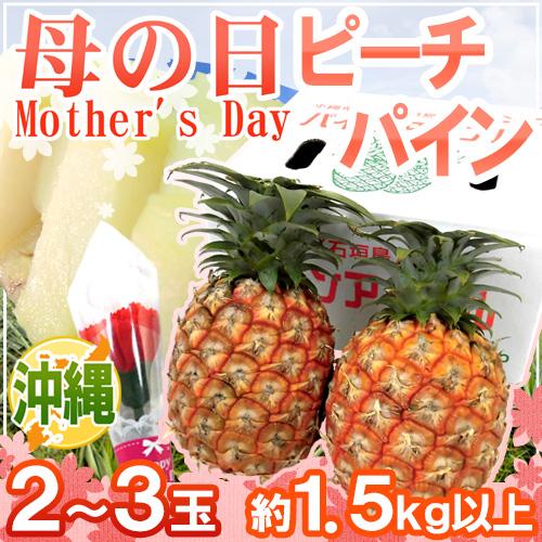 母の日ギフト ”沖縄 ピーチパイン” カーネーション造花付き 2〜3玉 約1.5kg【予約 5月2日〜5月10日お届け予定】 送料無料