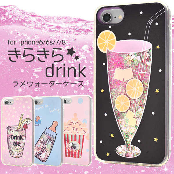 スマホケース iPhone8 iPhone7 iPhone6 iPhone6s iPhoneSE(第二世代)用 きらきら ドリンク ラメウォーターケース iPhoneケース 可愛い おしゃれ 韓国風 携帯カバー 携帯ケース スマホカバー ラメが流れる キラキラデコケース SoftBank au docomo