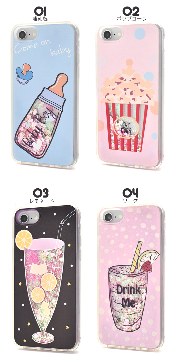 グラスや哺乳瓶の窓から、ゆらゆらするラメが見えるウォーターケース! 飲み物がゆらゆらするかわいいケースです☆衝撃やキズなどからiPhone6/6s/7/8を守るのはもちろん、カメラ、イヤホンや各種ボタンなどをケースに入れたまま操作可能です。便利なストラップホール付きです。01(哺乳瓶)、02(ポップコーン)、03(レモネード)、04(ソーダ)の4種類からお選びください。ケースがスマホにガッチリ固定されて外れない…そんな時に便利なスマートフォンリムーバー付き!※iPhoneは付属しません。※ライセンス商品ではありません。※衝撃を与えると、中の液体が漏れ出す場合があります。取り扱いにはご注意ください。
