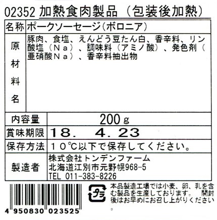 【2017年 DLG金賞】トンデンファーム ガーデンブルスト(200g)