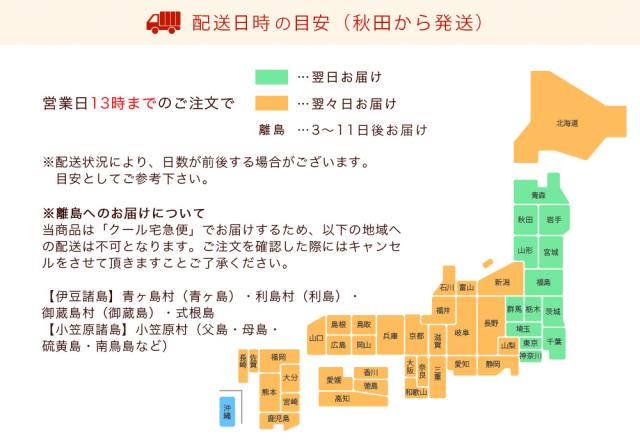 当商品は「クール宅急便」でお届けするため、以下の地域への配送は不可となります。ご注文を確認した際にはキャンセルをさせて頂きますことご了承ください。