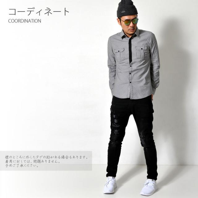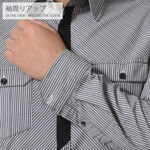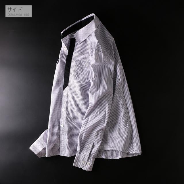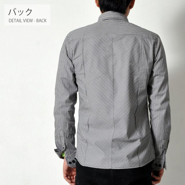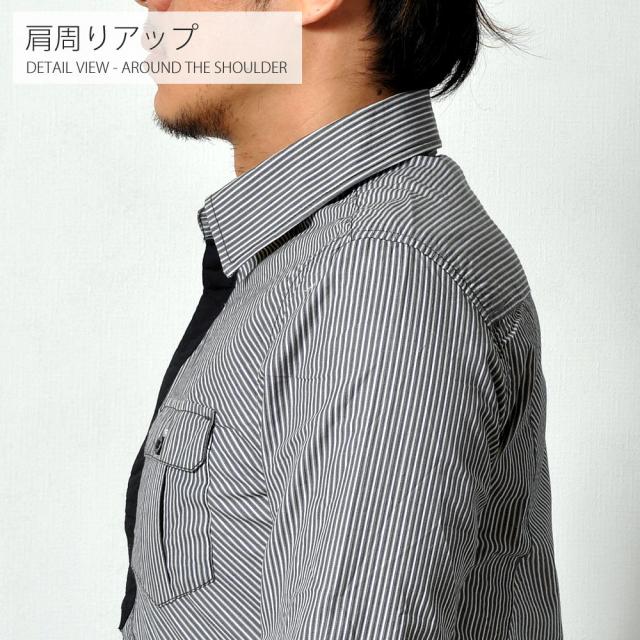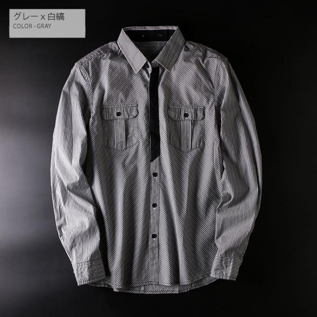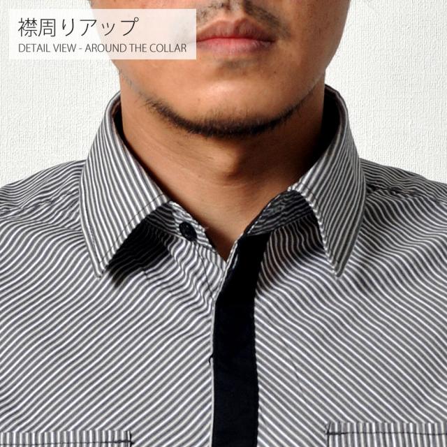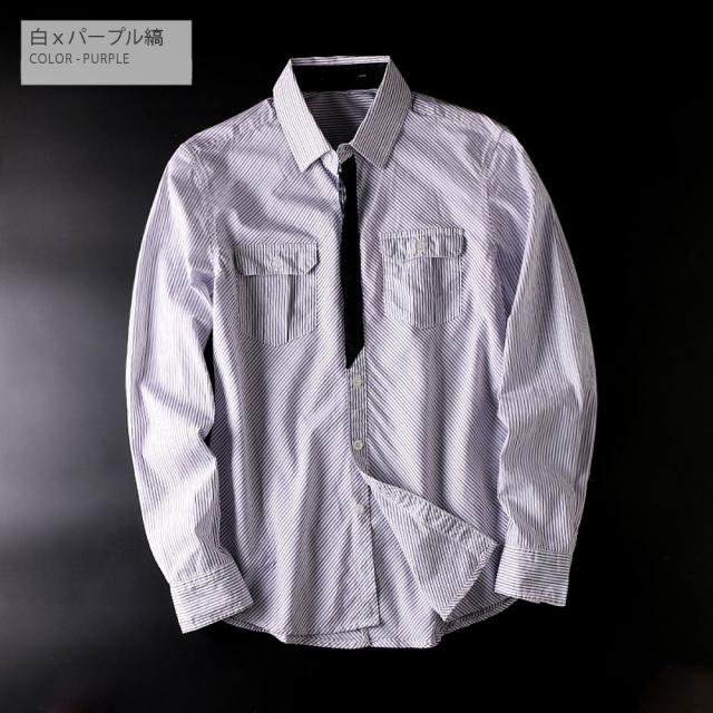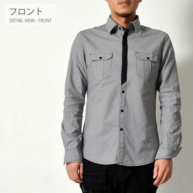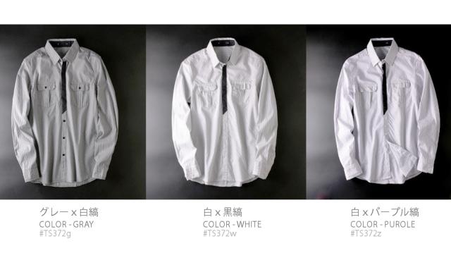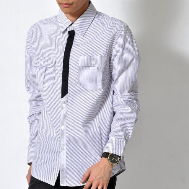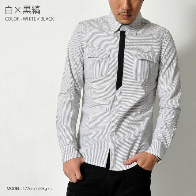 期間限定 SALE 長袖シャツ Yシャツ ワイシャツ ドレスシャツ フェイクタイ ポケット 綿 #TS372 M便