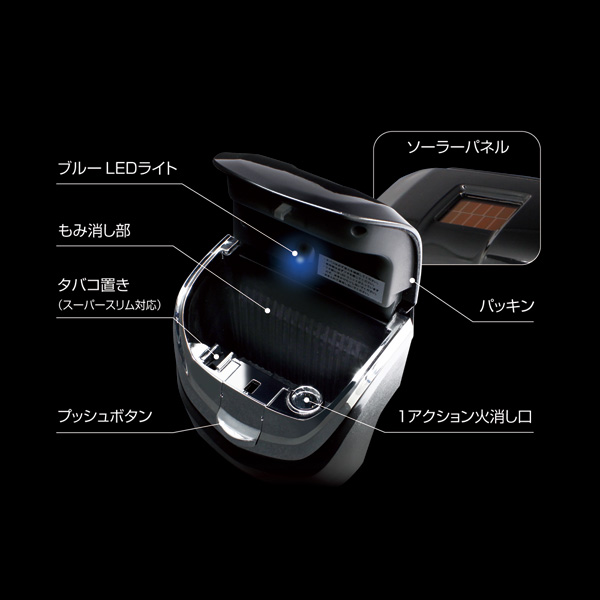 ●夜間の喫煙に便利な高輝度ブルーLED照明付き。