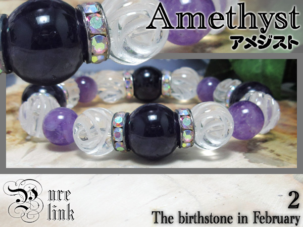聖なる紫石『アメジスト』水晶薔薇彫ハンドメイドブレス