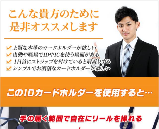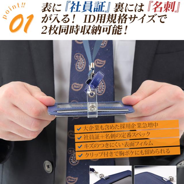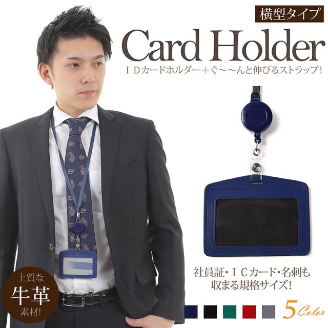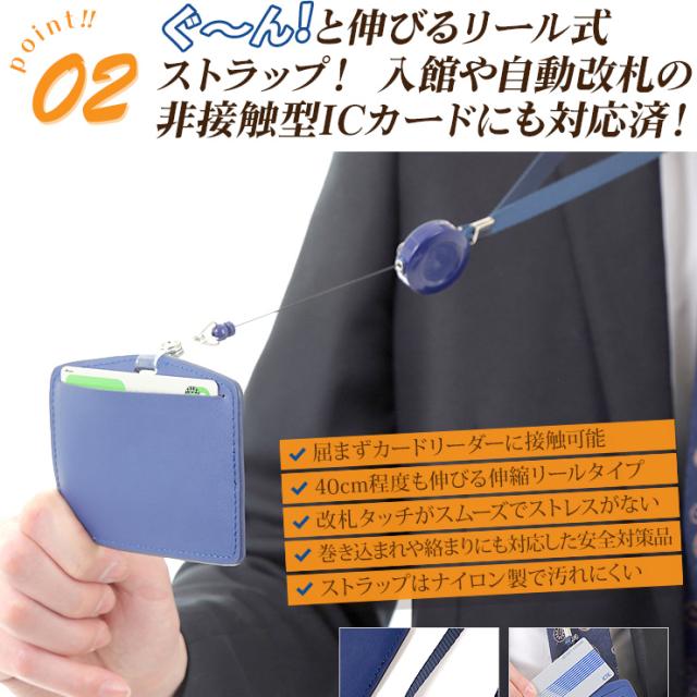 idカードホルダー idカードケース リール式 ネックストラップ 革 横型 よこ 首かけ おしゃれ ブランド 2枚 入る 両面