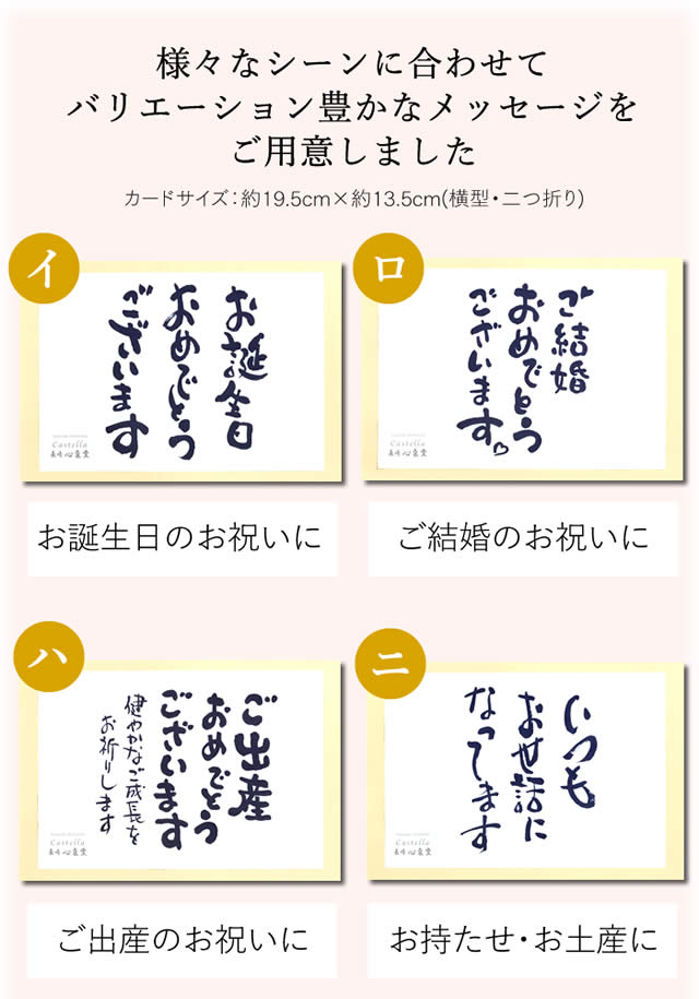 鶏卵(国産)、砂糖、小麦粉、水飴、ザラメ糖、蜂蜜、(一部に卵・小麦を含む)