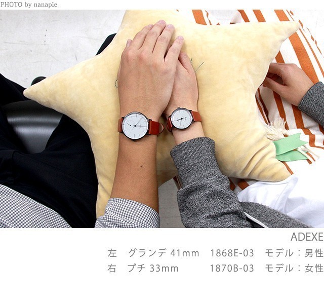 小嶋陽菜さん着用モデル 正規品 アデクス 2018スプリング スペシャルリミテッドモデル スイートコレクション プチ 33mm スモールセコンド ユニセックス 腕時計 1870B-07-JP18MAR ADEXE SWEET COLLECTION PETITE アナログ ホワイト×オレンジ 革ベルト ◆ADEXE(アデクス)は、ロンドン発のライフスタイリングブランドです。SNSでユーザーが発信したことから人気に火がつきました。ハッピーが舞い込むエンジェルナンバー“7777”を時計の価格に設定。シンプルで使いやすい機能性を追求し、時間を計るという時計の原点を大事にした洒脱でミニマルデザインが特徴です。メンズ・レディース・カジュアル・モードを問わずどんなファッションスタイルにもマッチ。 33mmケースのモデルに春らしいパステルカラーのスエードベルトが印象的なモデル。スイーツカラーをモチーフにしたベルトがポップでスイートな彩りを添えます。 インスタグラム(Instagram)やブログで人気爆発!vikka(ヴィカ)やSWEET(スウィート)等多数ファッション雑誌掲載