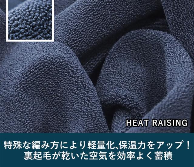 速乾性にも優れ、裏側の特殊起毛が人体からの発生した熱を効率的に蓄積。