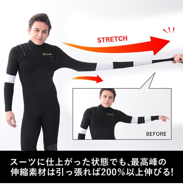 抜群の伸縮性と着心地の良さが自慢の FELLOW ウェットスーツ。