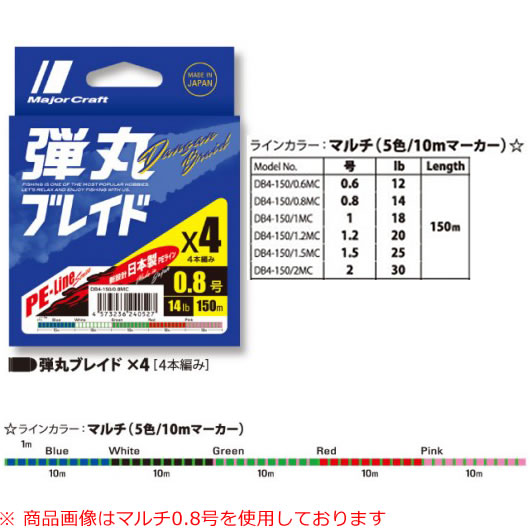 メジャークラフト 弾丸ブレイド 4本編み マルチカラー DB4-150 (PEライン)