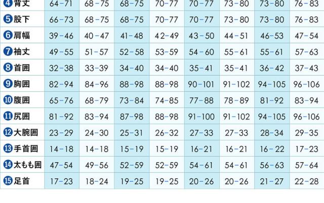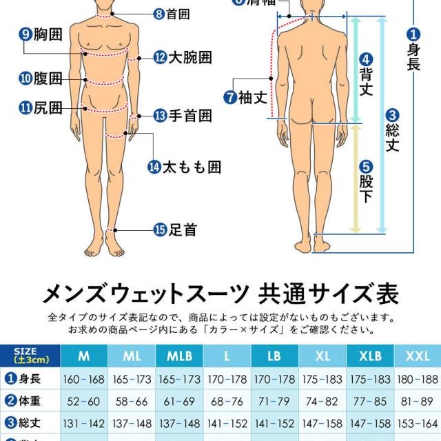 ◆ ウェットスーツ サイズ