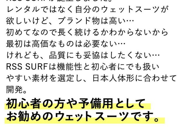 RSS SURFは機能性と初心者にでも扱いやすい素材を選定し、日本人体形に合わせて開発。