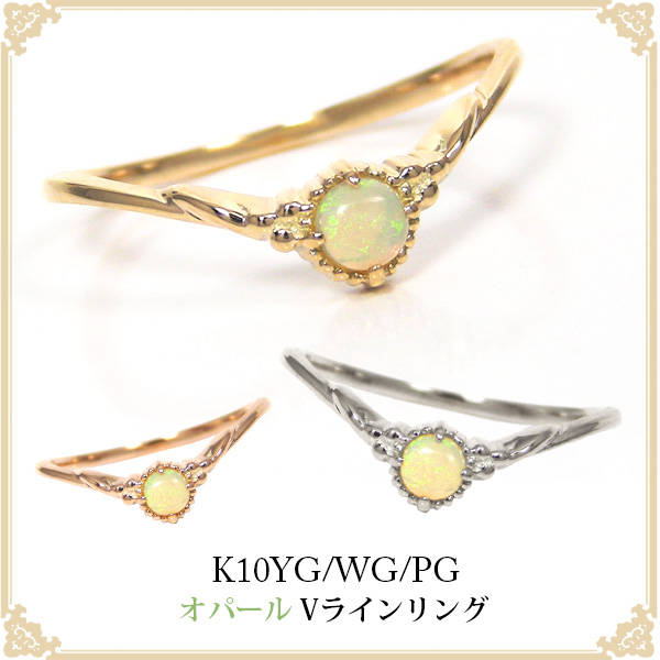 オパール リング ピンキーリング 重ね付け 華奢 細身 K10YG/PG/WG 10k 10金