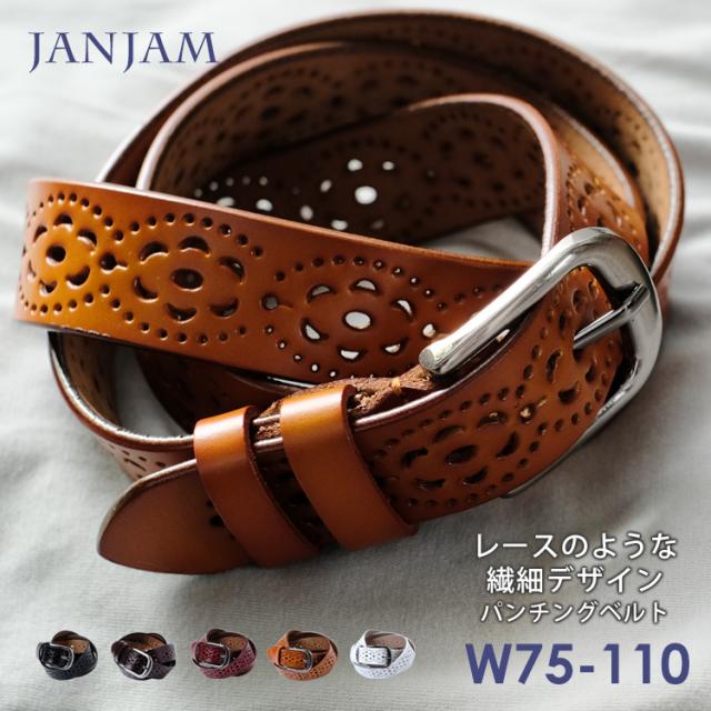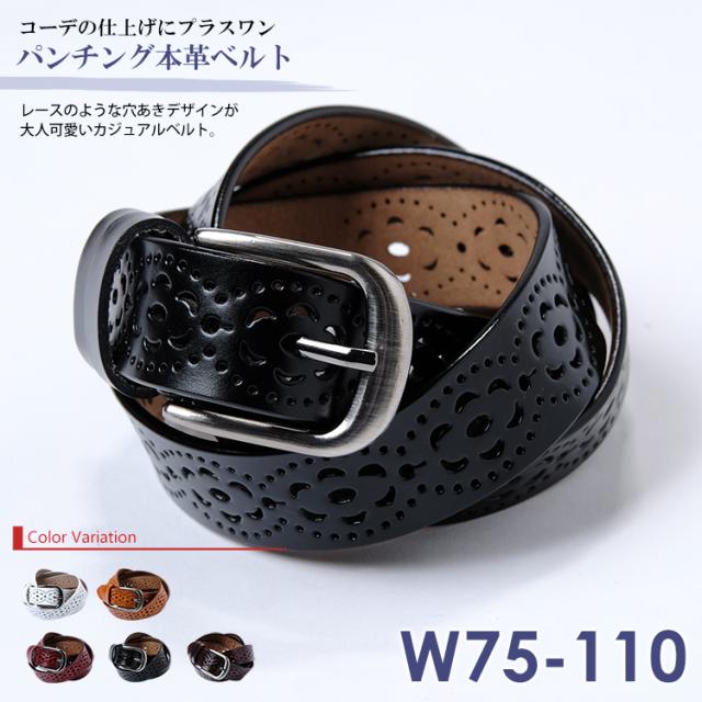 大きいサイズ レディース レザーベルト メール便送料無料 ピンバックル フリーホール パンチング 本革 W75 W80 W85 W90