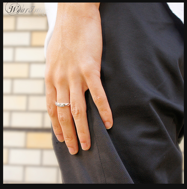 銀の線をひねったような鏡面の質感が美しく、きらびやかなリング。