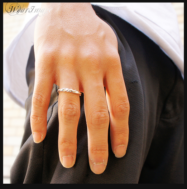銀の線をひねったような鏡面の質感が美しく、きらびやかなリング。