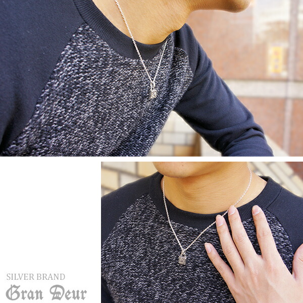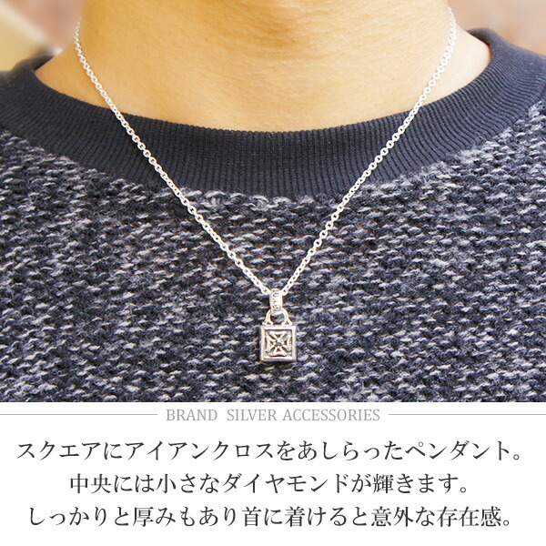 【GRAN DEUR】 ダイヤモンド アイアンクロス スクエア シルバーネックレス