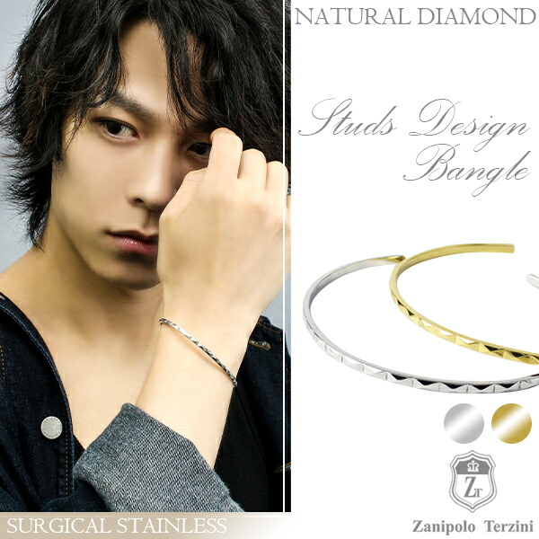【Zanipolo Terzini】 選べる2カラー スタッズ シンプル 定番 バングル 天然ダイヤモンド