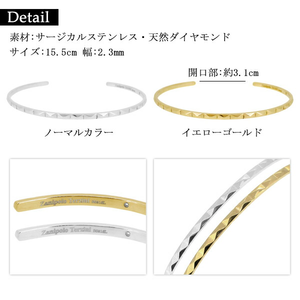 ザニポロタルツィーニ サージカルステンレス 天然ダイヤモンド シンプル スタッズ バングル ブレスレット ステンレスアクセサリー
