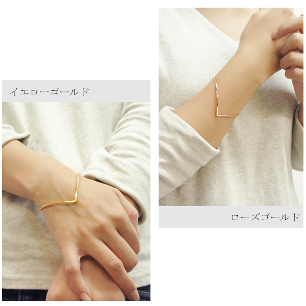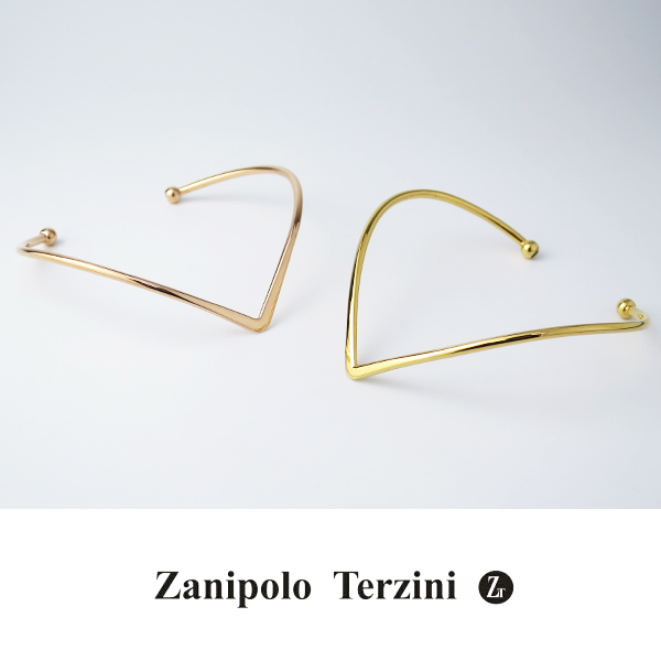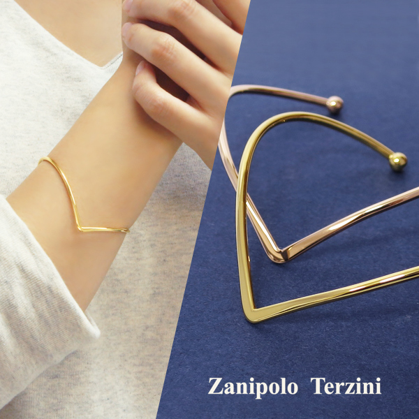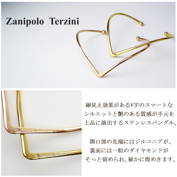 【Zanipolo Terzini】 選べる2カラー シンプル 細見え V字 バングル 天然ダイヤモンド