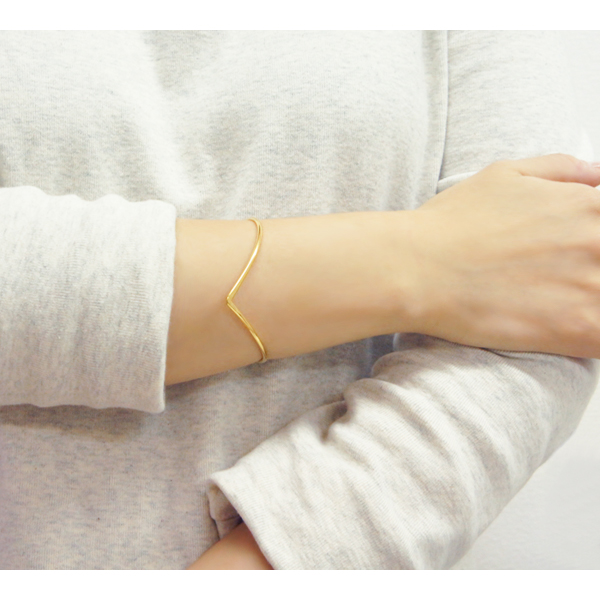 すっきりしたV字のシルエットを描くステンレスバングル。