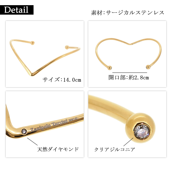 ザニポロタルツィーニ サージカルステンレス 天然ダイヤモンド シンプル Vライン バングル ブレスレット ステンレスアクセサリー