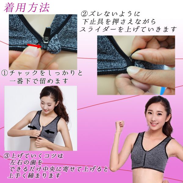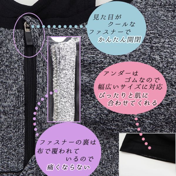 - ファスナータイプは初めて購入しましたが、着け心地が好みです!最近暑いので、スポブラの着脱が面倒でしたが、これはファスナーなので簡単にできて満足しております。またリピします。