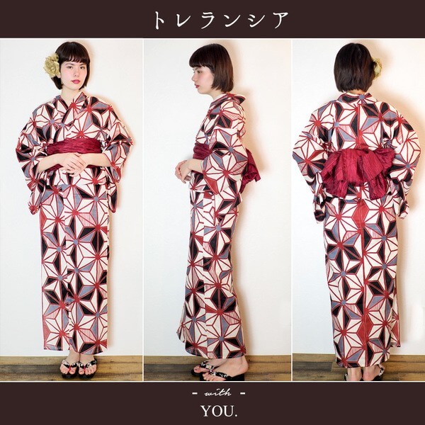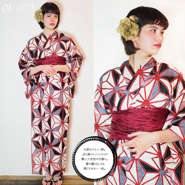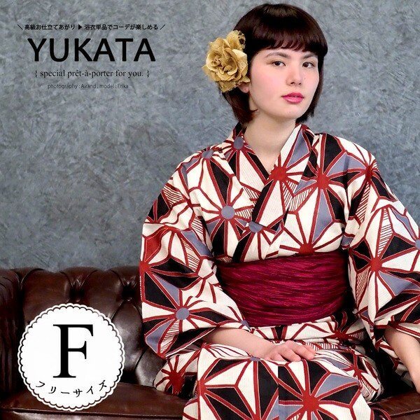 送料無料 夏新作 浴衣 レディース 女性浴衣 単品 浴衣単品 ゆかた フリー ストライプ お洒落 赤 黒 アサノハ モダン レトロ 大正