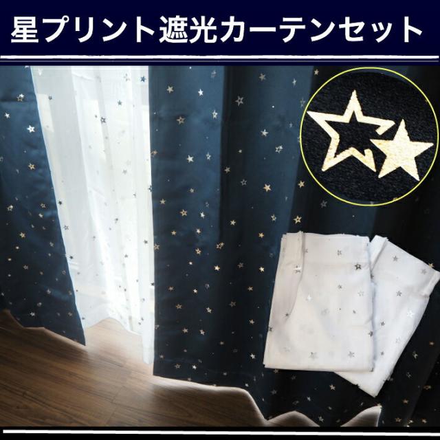 星柄箔プリント1級遮光カーテン&星柄箔プリントレースカーテン4枚セット 【幅100×丈110,135,150,178,185,200,230cm】