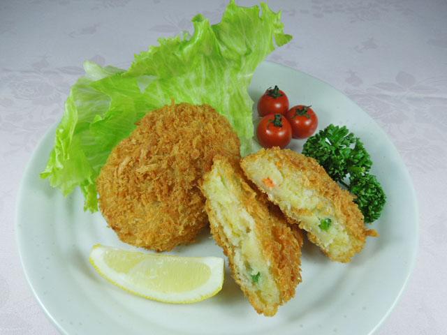 ★じゃがいも、人参、乾燥マッシュポテト、グリーンピース、コーン、玉葱、砂糖、食塩、食用大豆油、香辛料、衣〔パン粉、小麦粉、食用大豆油〕、加工デンプン、調味料(アミノ酸)、増粘多糖類、ベーキングパウダー、乳化剤、(原材料の一部に乳を含む)