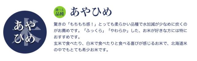 | 産地/品種/産年 | 北海道産/あやひめ/令和7年度産 |